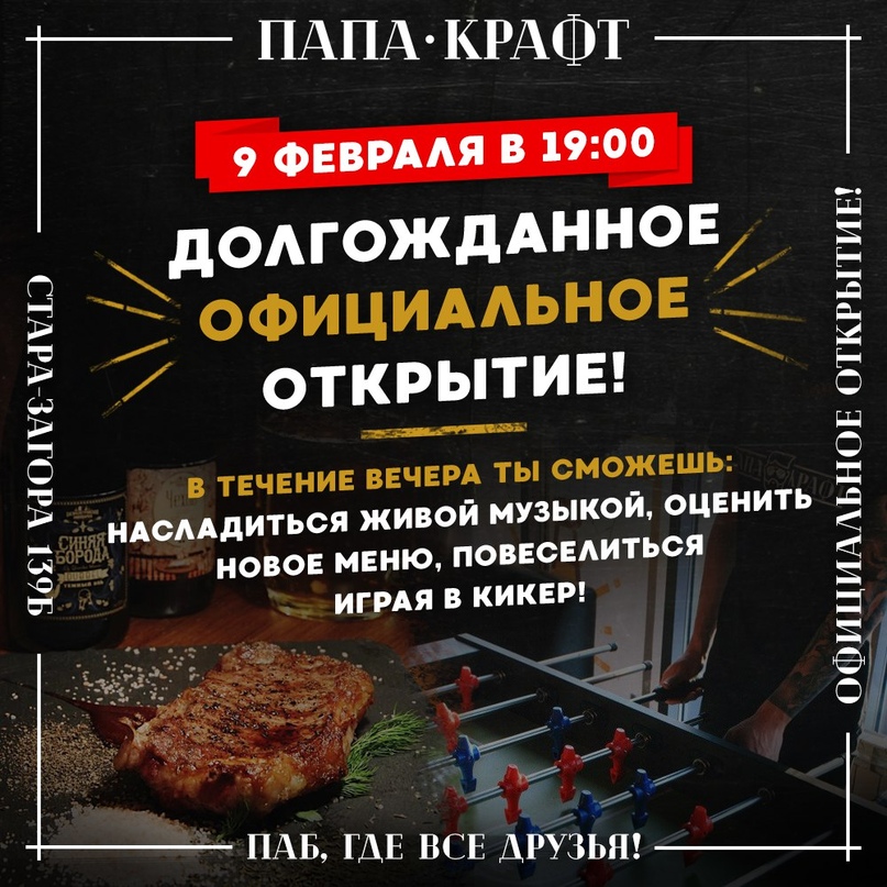Из преимуществ: живая музыка по выходным, свыше 80-и сортов крафтового пива, гриль-меню, прямые трансляции футбола на большом экране, а каждое воскресенье блюда и напитки по себестоимости.